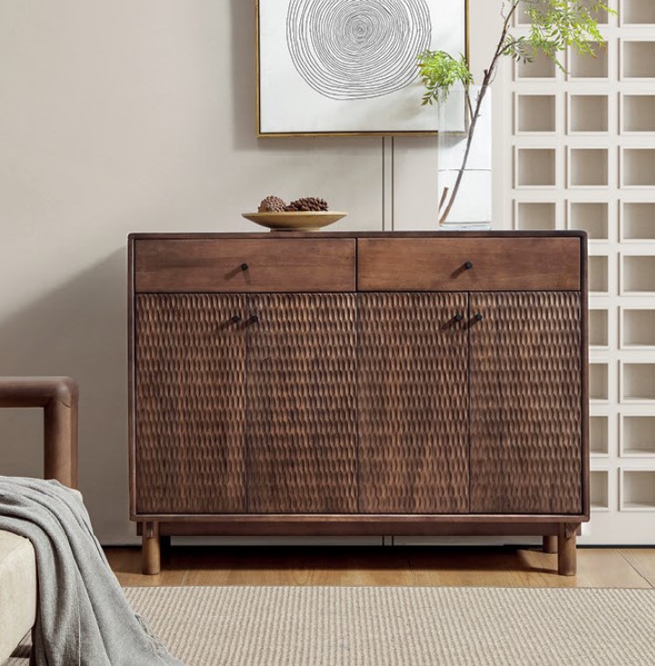 家具品名 : FH XK32-1# 北歐風 胡桃色 實木四門造型鞋櫃