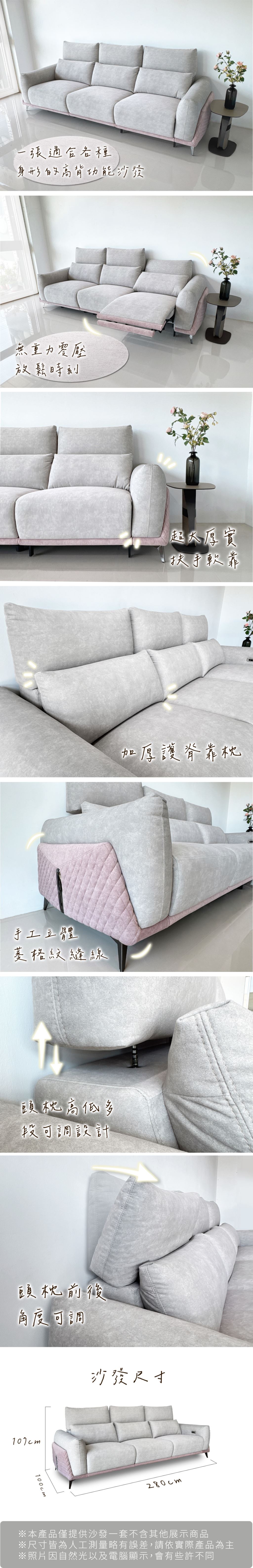 沙發尺寸 : 280*100*107 CM