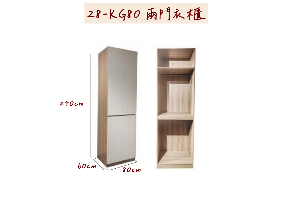 家具品名 : 28-KG80# 兩門衣櫃
